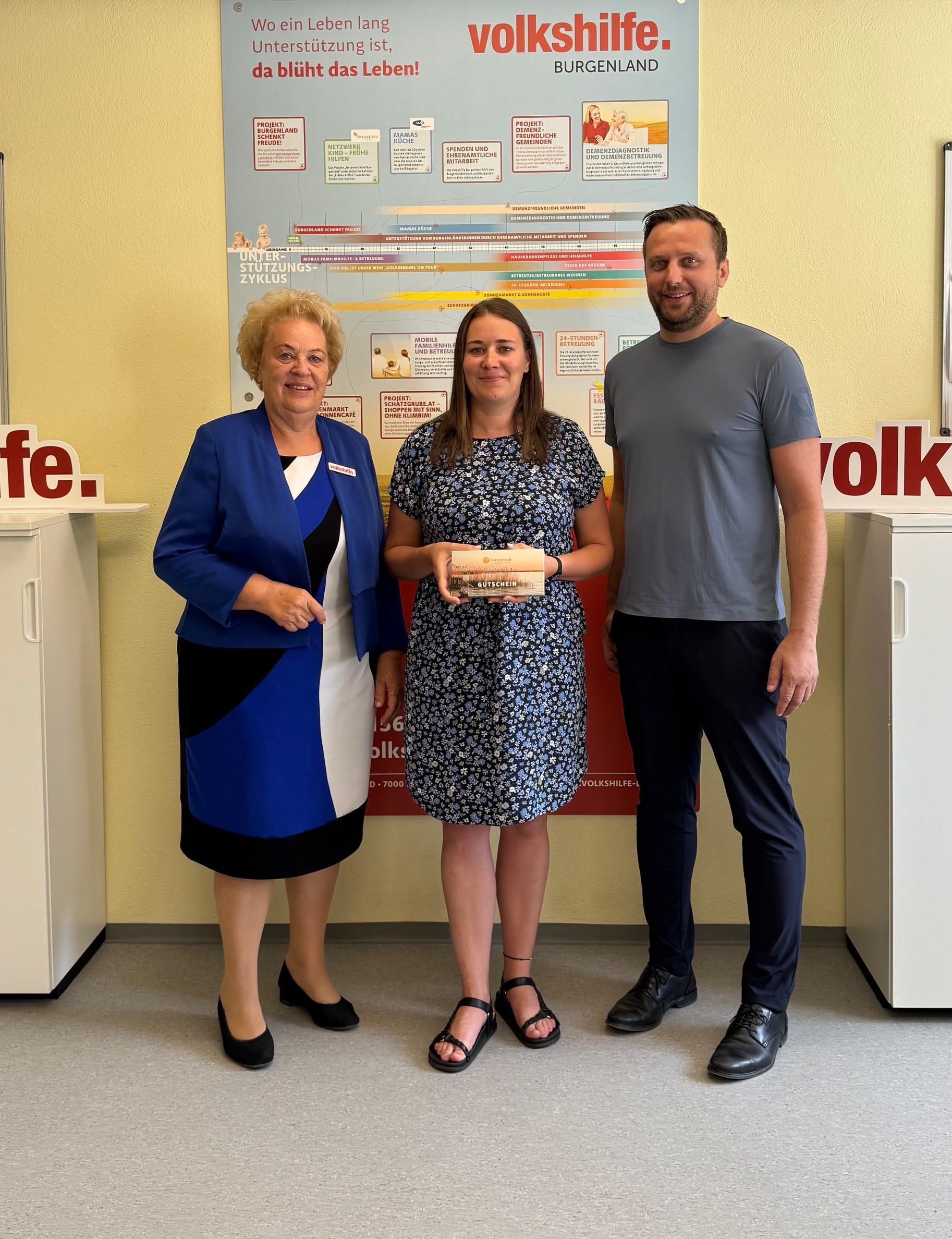 Bildbeschreibung von links: Präsidentin der Volkshilfe Burgenland Verena Dunst, Judith Anger und Leiterin des Sonnenmarktes Angelika Seldte