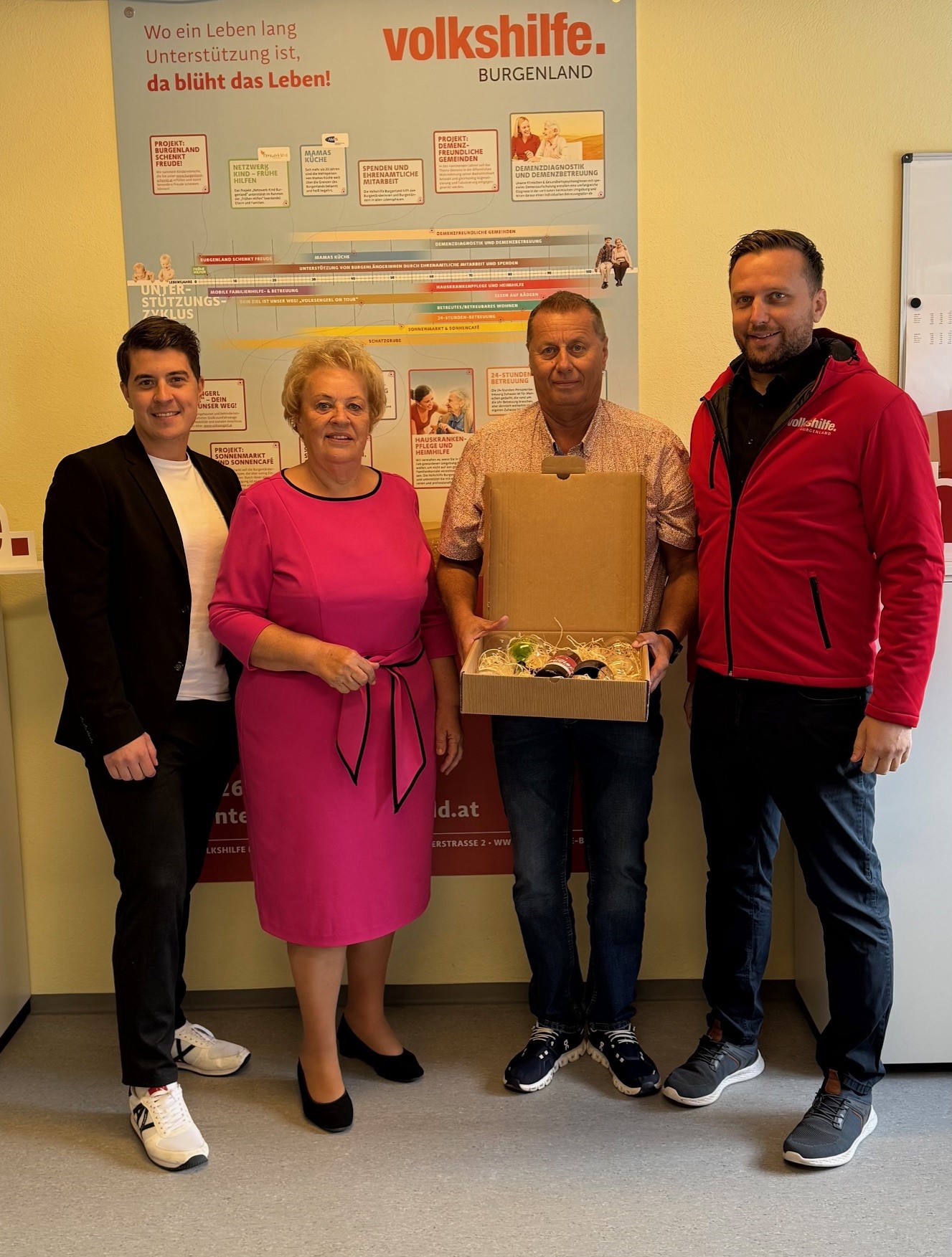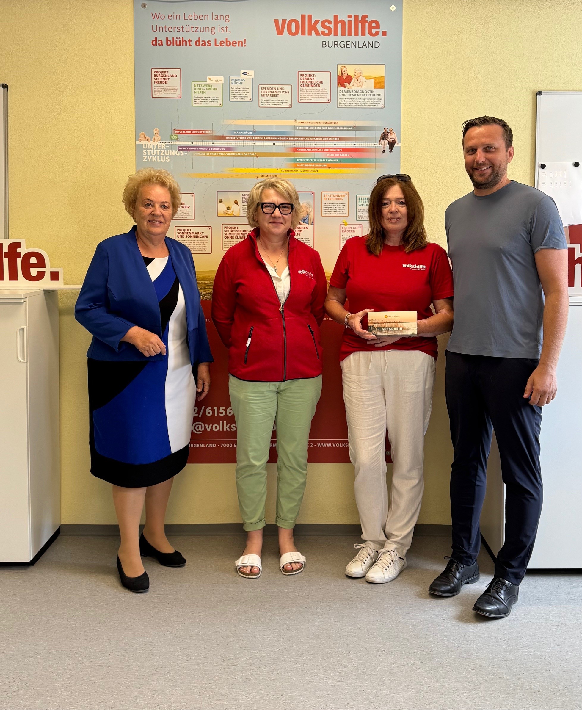 Bildbeschreibung von links: stv. GF Patrick Gober, Präsidentin der Volkshilfe Burgenland Verena Dunst, Funktionär Herbert Sifkovits und GF Markus Kaiser