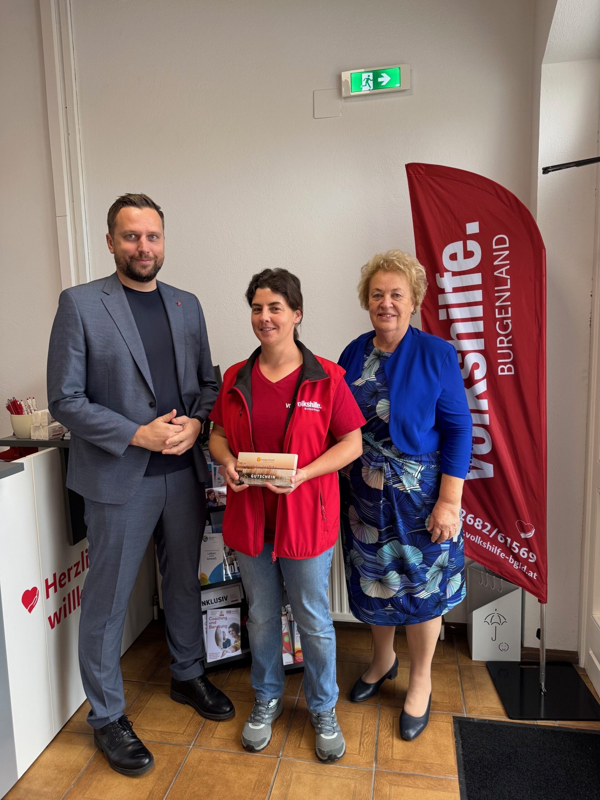 Bildbeschreibung von links: GF der Volkshilfe Burgenland Markus Kaiser, Jennifer Müller und Präsidentin der Volkshilfe Burgenland Verena Dunst